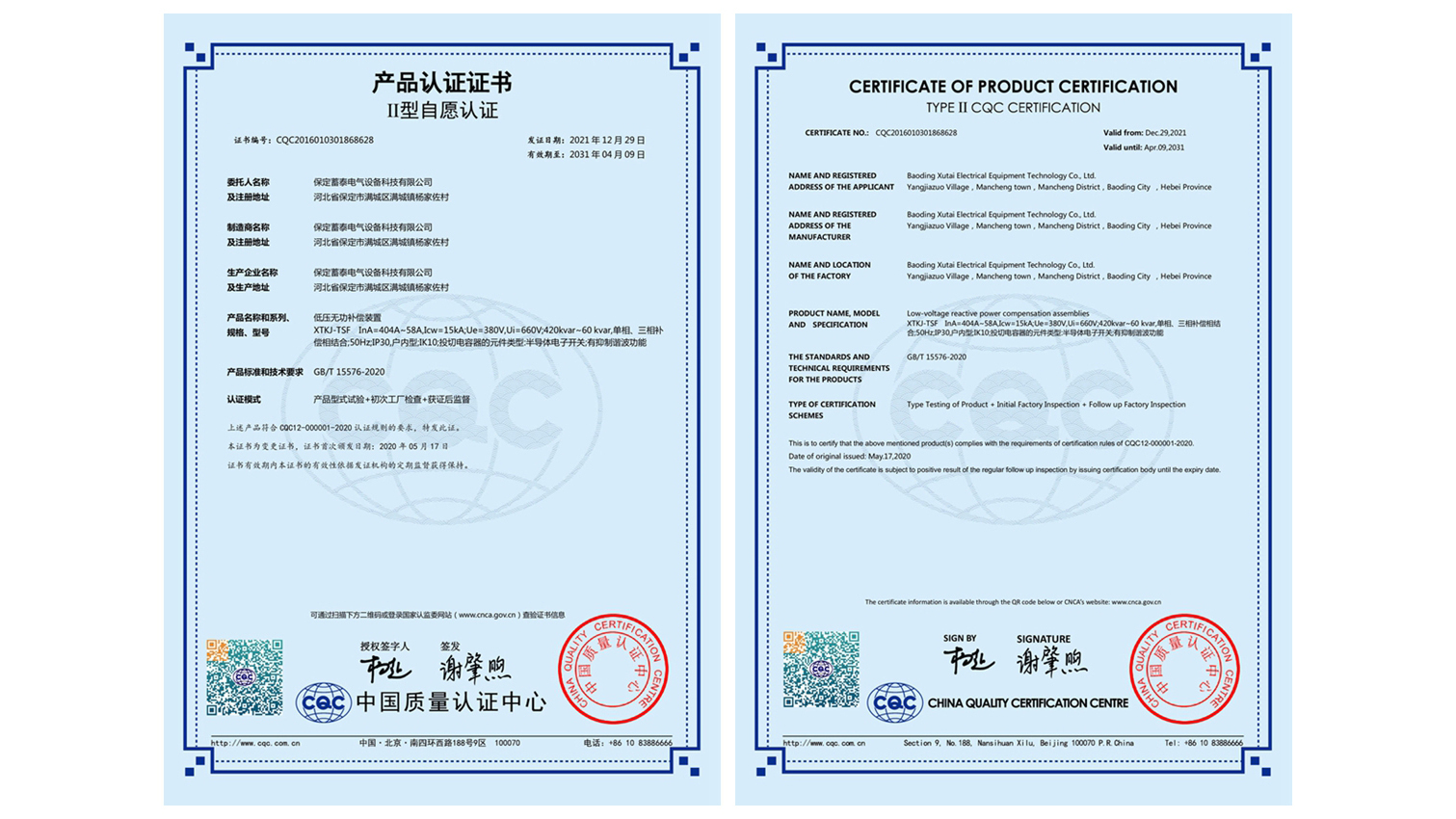 CQC产品认证证书